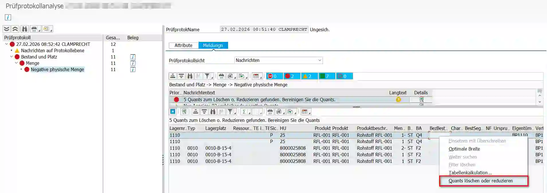 - /SCWM/CHM_LOG – Erkennen von Inkonsistenzen
