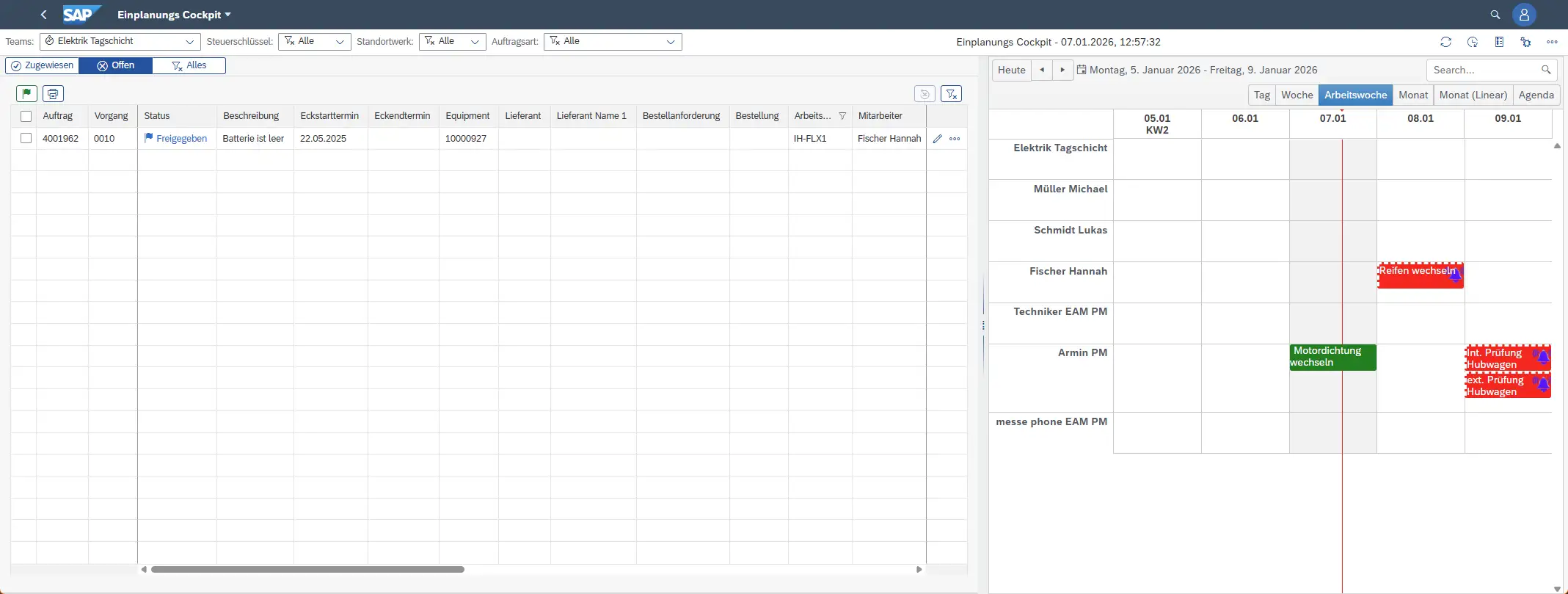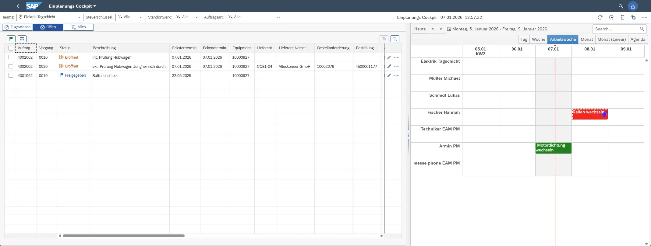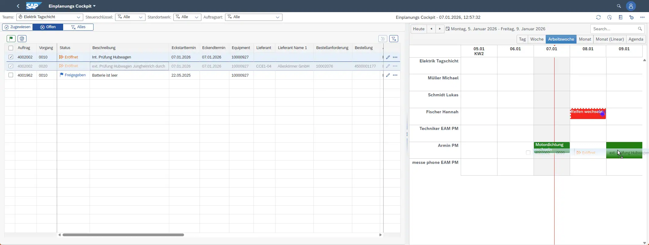 Wir planen beide Vorgänge per Drag & Drop auf einen internen Benutzer (z. B. den verantwortlichen Instandhalter Armin) ein – auch den externen Vorgang.