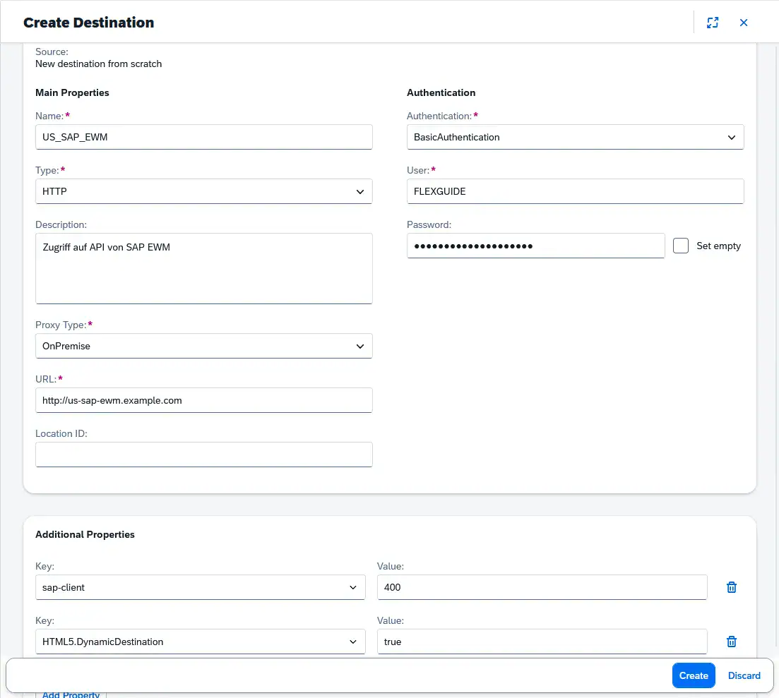 In the pop-up dialog that appears, select From Scratch. You can now securely store the SAP system access credentials in the destination. Here is an example setup: